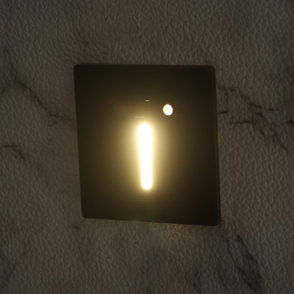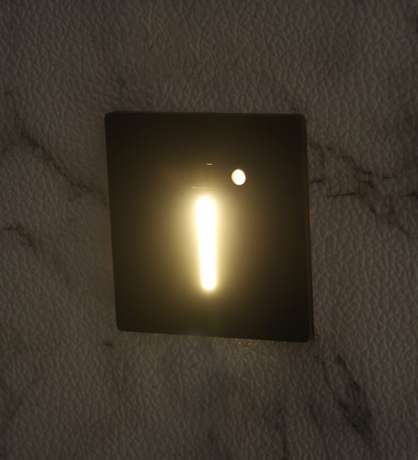 LEARC exclusive 3 watt indoor black glass foot light with motion sensor for 3×3 box 3K, Detection Range – 120 degree, Detection distance – 3 meter.