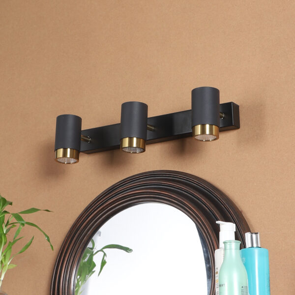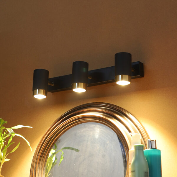 Aluminium die cast, black and antique finish (9*3= 27 watt) tripple spot light bar with warm white (yellow) light output. Great for installation above a dressing mirror, dressing table to provide illumination while applying make-up. It can also be used as a wall light, spot light, ceiling spot light bed side light, picture light. The lighting spot can be adjusted to any required position. Also availble in single and double spot options.