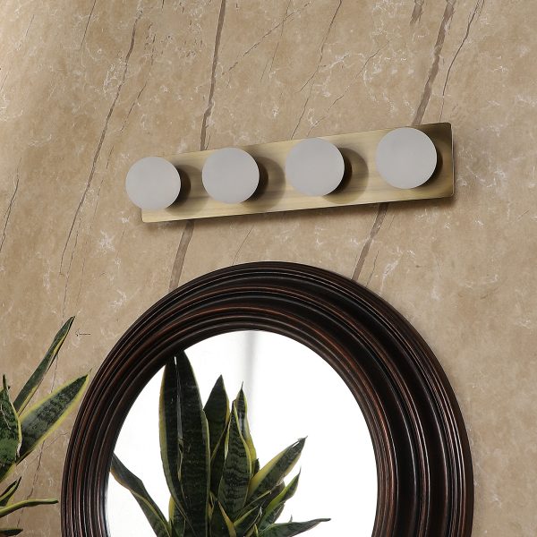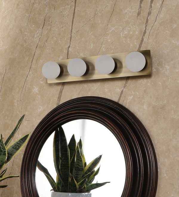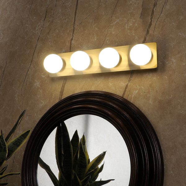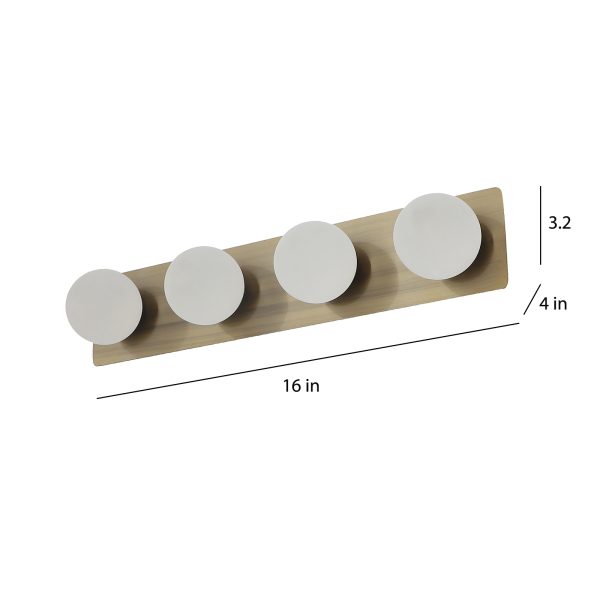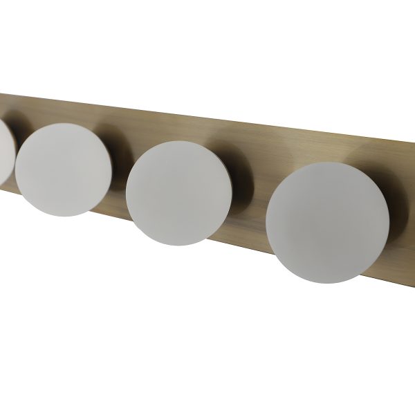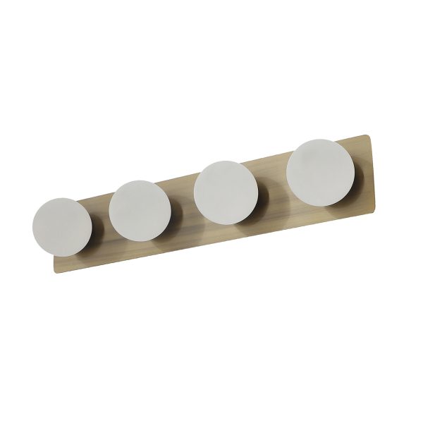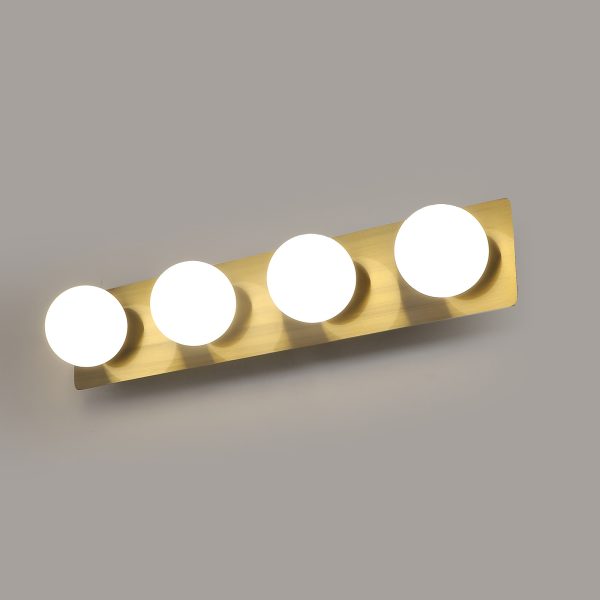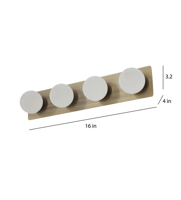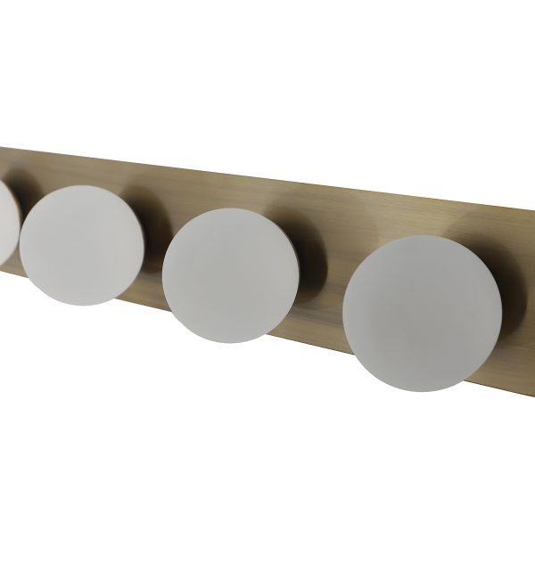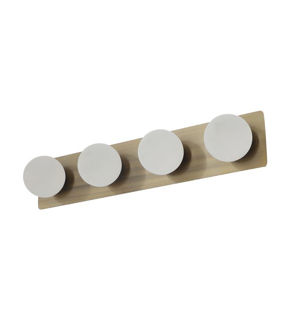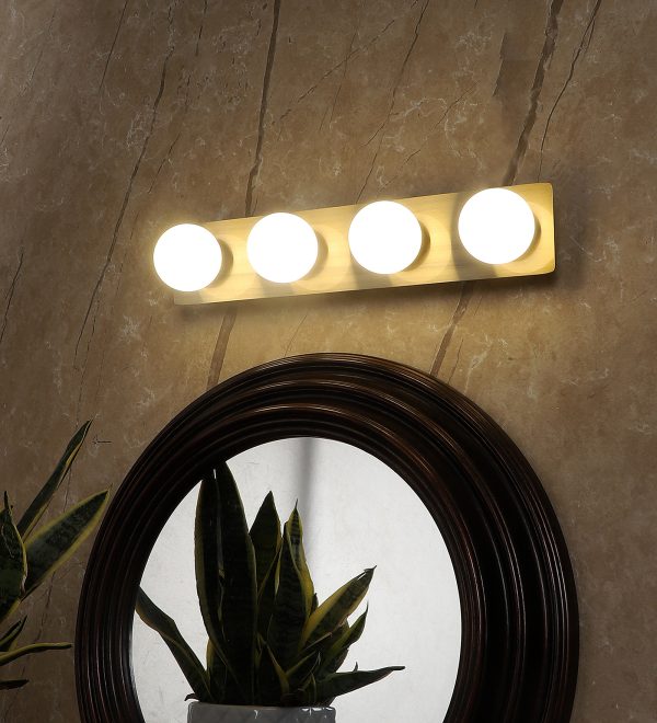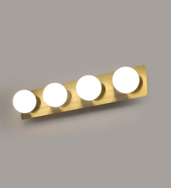 Antique gold finish LED wall light having acrylic balls using high quality LED with warm white (yellow) light output. This design is largely preferred by architects and interior designers. Application includes both residential and commercial premises. Can also be used as a mirror light.