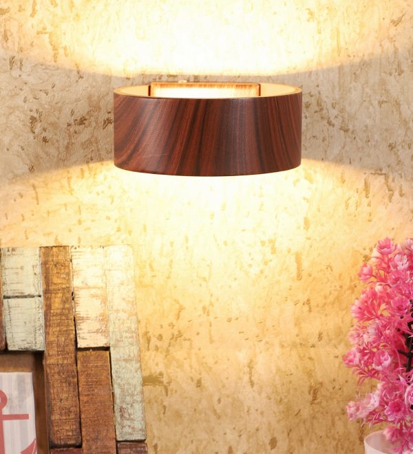 Brown (wood) finish, aluminium die cast round LED wall light with indirect light, using high quality LED and driver with high success rate having less than 0.5% replacement with warm white (yellow) light output. This design is largely preferred by architects and interior designers. Application includes both residential and commercial premises. Also used as a wall highlighter. Can be used in multiple quantities in the same wall to create a design. Also available in White finish with code WL1553. Can be customised as per requirement for bulk quantities .