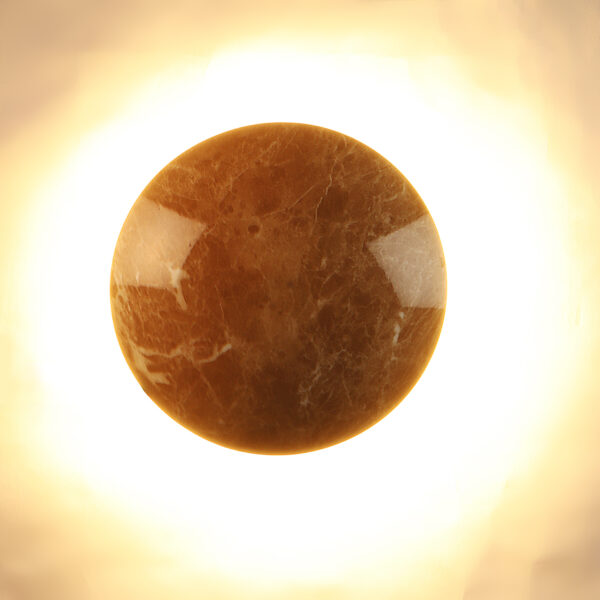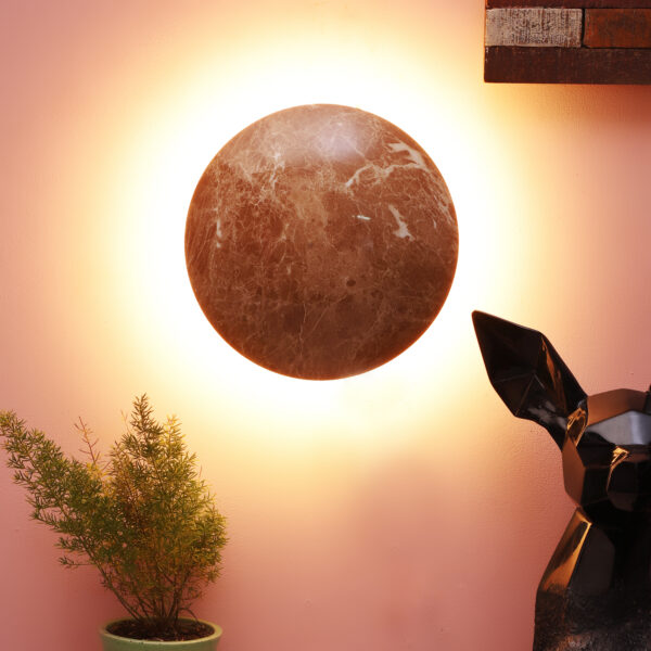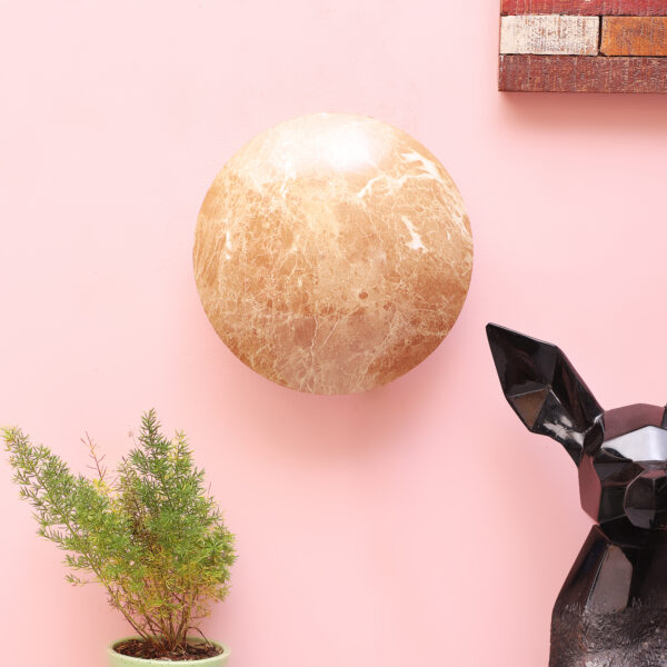 Italian marble finish yellowish brown having glossy finish, aluminium sheet round LED wall light with indirect light, using high quality LED and driver with high success rate having less than 0.5% replacement with warm white (yellow) light output.This design is largely preferred by architects and interior designers. Application includes both residential and commercial premises. Can also be used as a wall highlighter. Also available in attractive glossy grey brown marble finish with code WL2550 and wood finish with code WL2551.