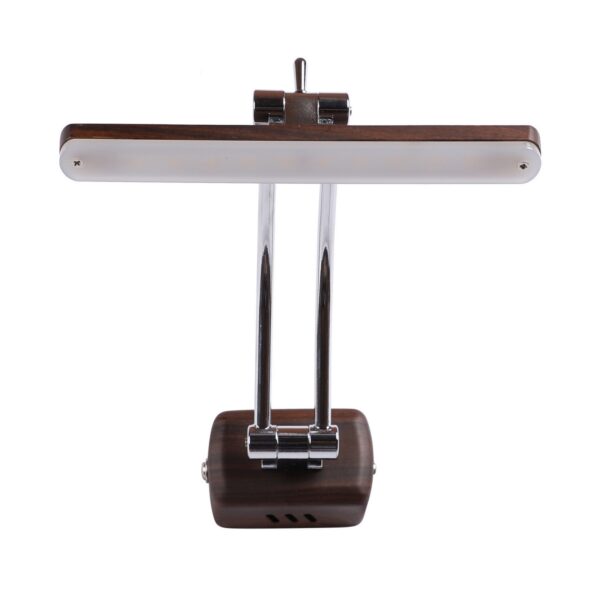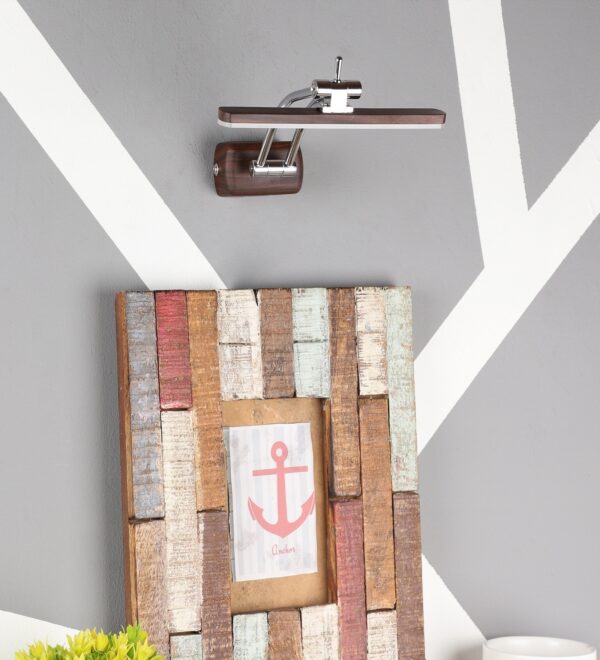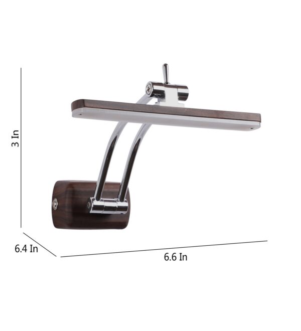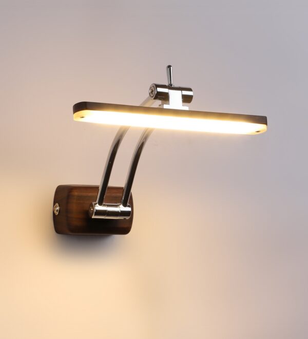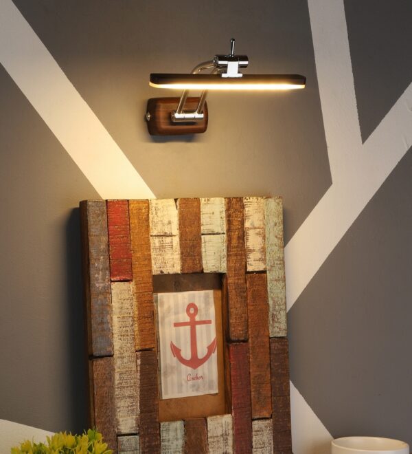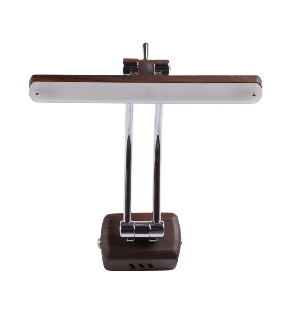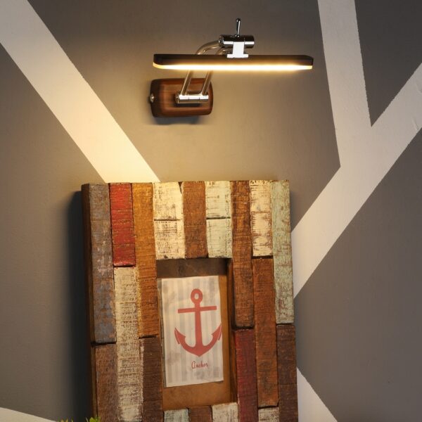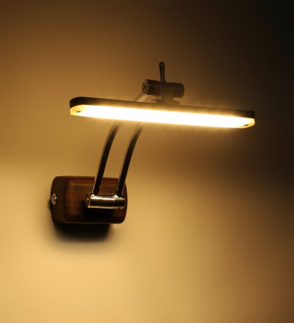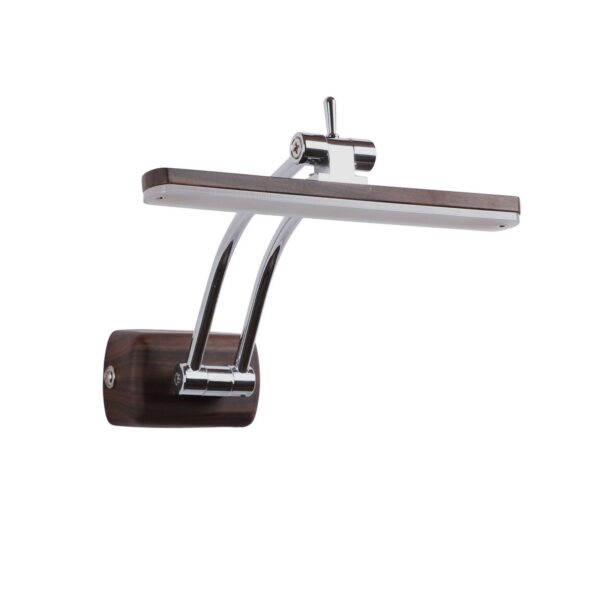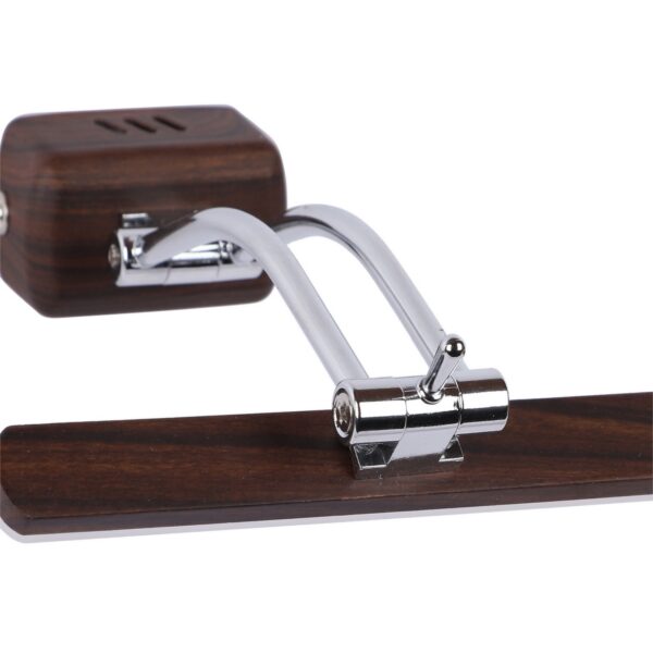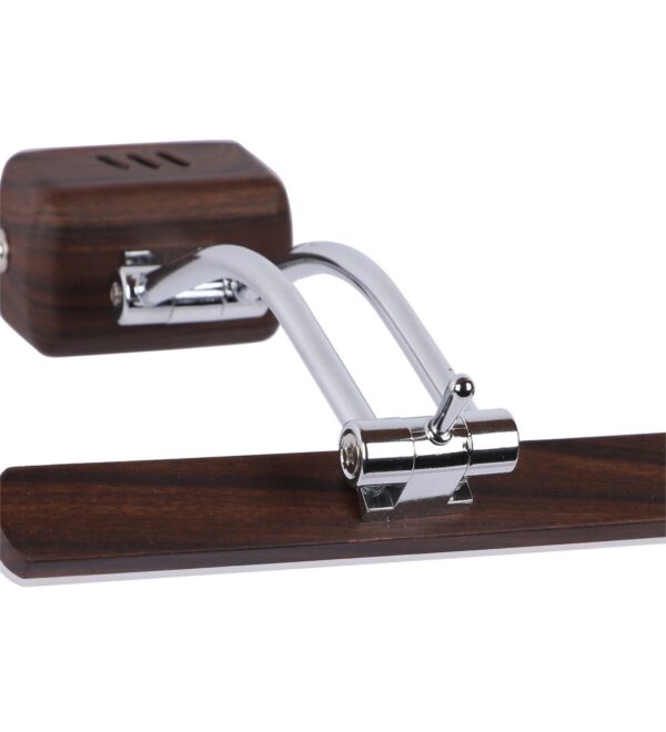 Exclusive dark brown (wood finish) LED picture light using high quality LED and driver with high success rate having less than 0.5% replacement with warm white (yellow) light output. It features two adjustible points. It is usually placed over the painting or a photo frame on the wall. Its premium quality wood finish makes it one of the best selling product in our catalogue. It is also available in medium and big sizes with codes ML333-M, ML333-L. it can be made in silver, antique, copper, white, and black finish in case of bulk requirement.