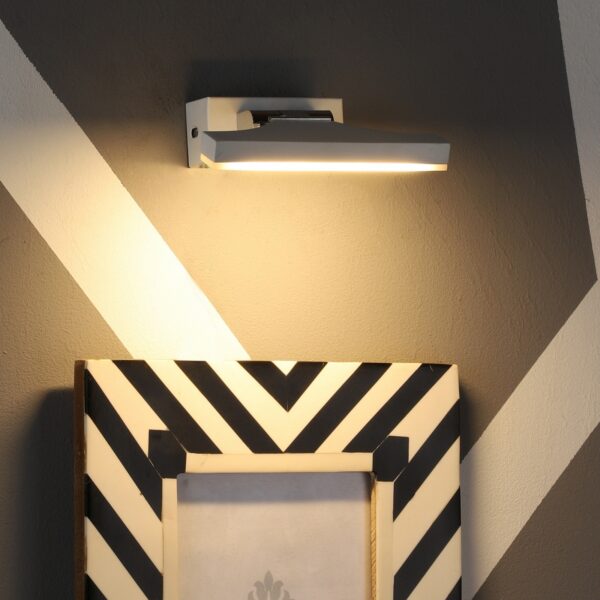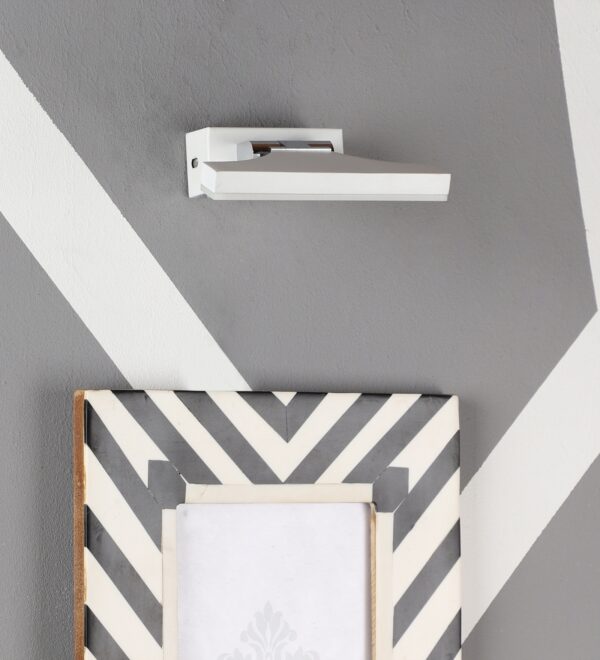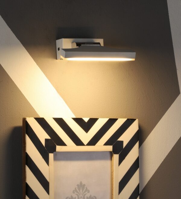 White powder coated LED picture light using high quality LED and driver with high success rate having less than 0.5% replacement with warm white (yellow) light output. It features one adjustible point. It is usually placed over the painting or a photo frame on the wall. Can also be used above the mirror. Its premium quality and finish makes it one of the best selling product in our catalogue. Also available in brown (wood finish) with code ML335-S. It can be made in silver, antique, copper, and black finish in case of bulk requirement.