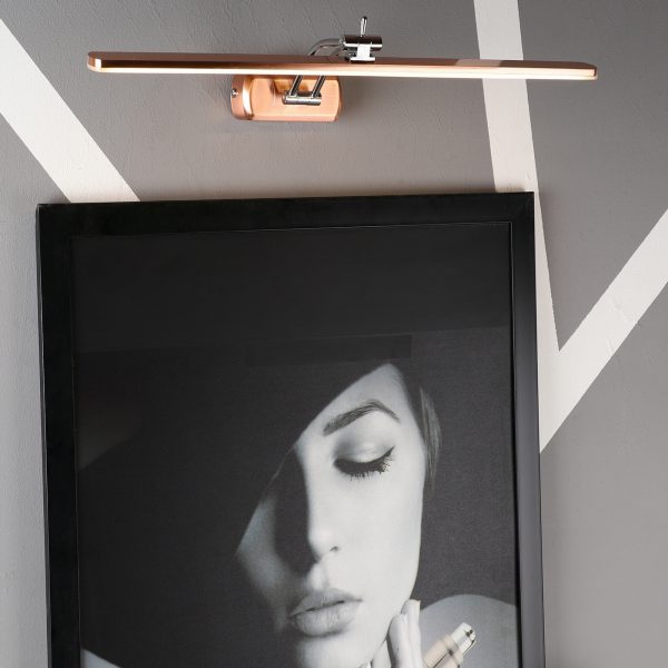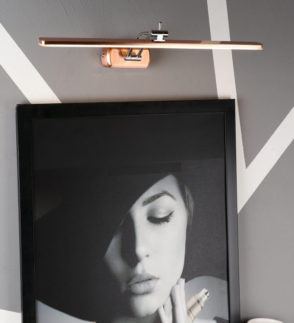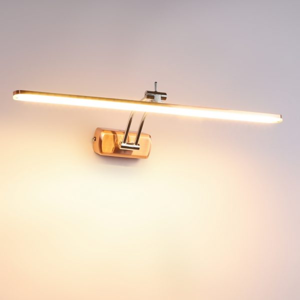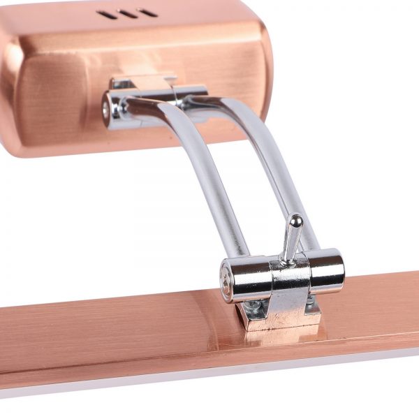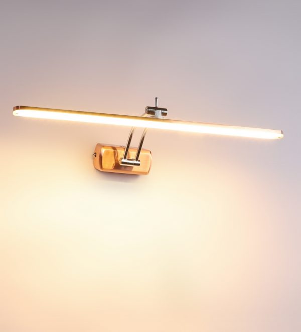 Exclusive copper finish LED picture light using high quality LED and driver with high success rate having less than 0.5% replacement with warm white (yellow) light output. It features two adjustible points. It is usually placed over the painting or a photo frame on the wall. Its premium quality copper finish makes it one of the best selling product in our catalogue. it can be made in silver, antique, wood, white, and black finish in different width in case of bulk requirement.