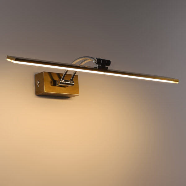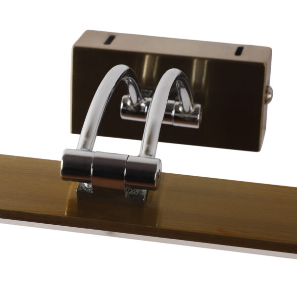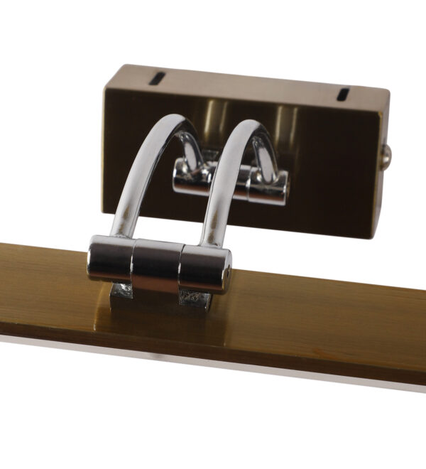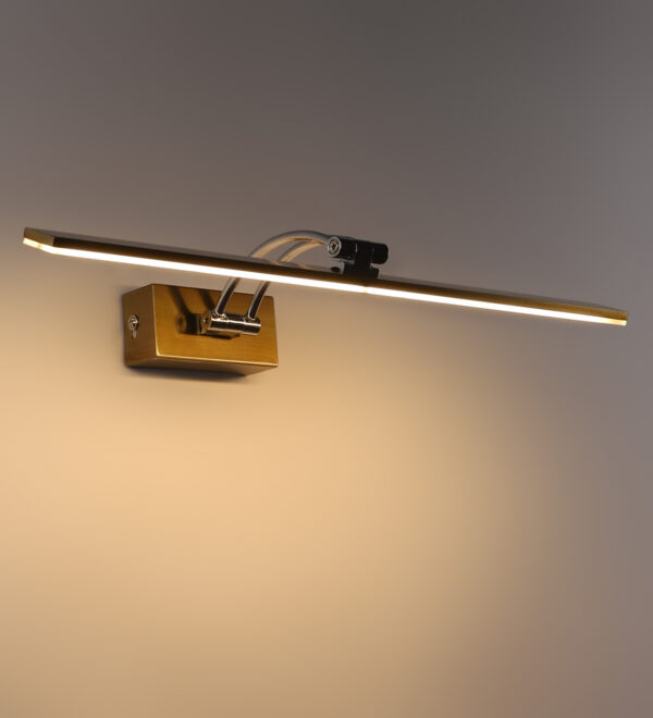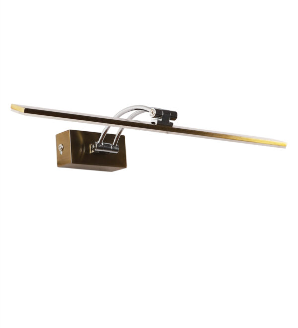 Antique gold finish LED picture light using high quality LED and driver with high success rate having less than 0.5% replacement with warm white (yellow) light output. It features two adjustible point. It is usually placed over the painting or a photo frame on the wall. Can also be used above the mirror light.