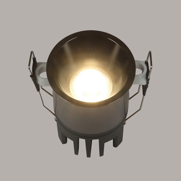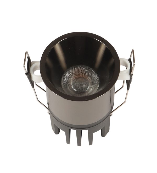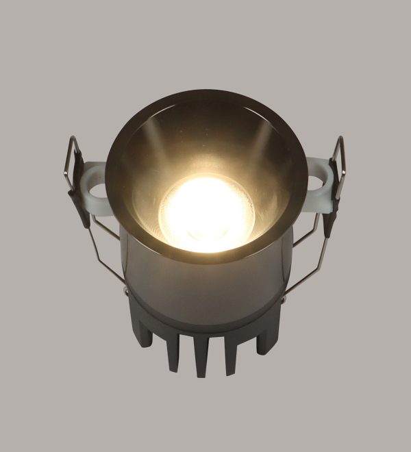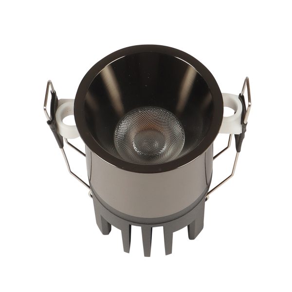 Premium aluminium die cast electroplated jet black finish 7 watt LED light with Bridgelux COB and high quality LED driver. Used in ultra modern spaces.