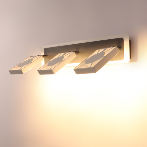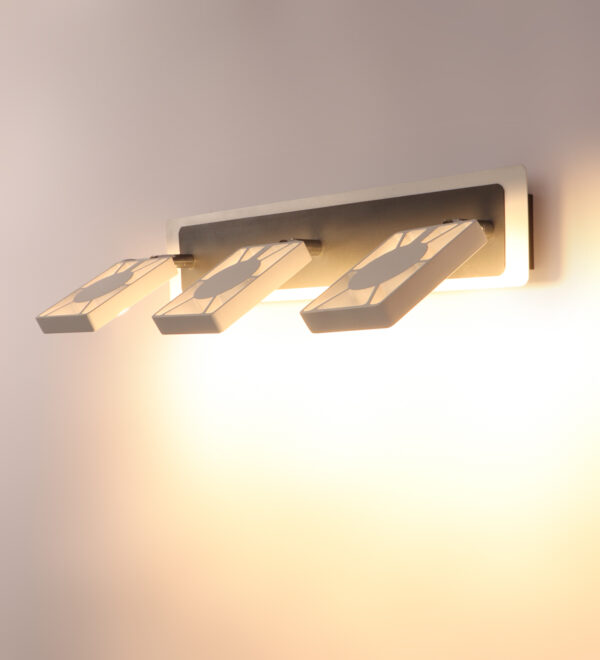Aluminium die cast, premium powder coated adjustable spot/picture light in white_brown finish. It is having three spots of 9W each to provide a very bright warm white (yellow)output. The light emitting spot is mounted on a rotatable neck which can be rotated in all the directions enabling spot to be positioned wherever required. Picture lights are functional wall lights which offer a direct light on the object we need to enhance. Can also be made available in white (6000K) light output for bulk requirement. Also available in single spot and two spot options with code ML375-1 and ML375-2.