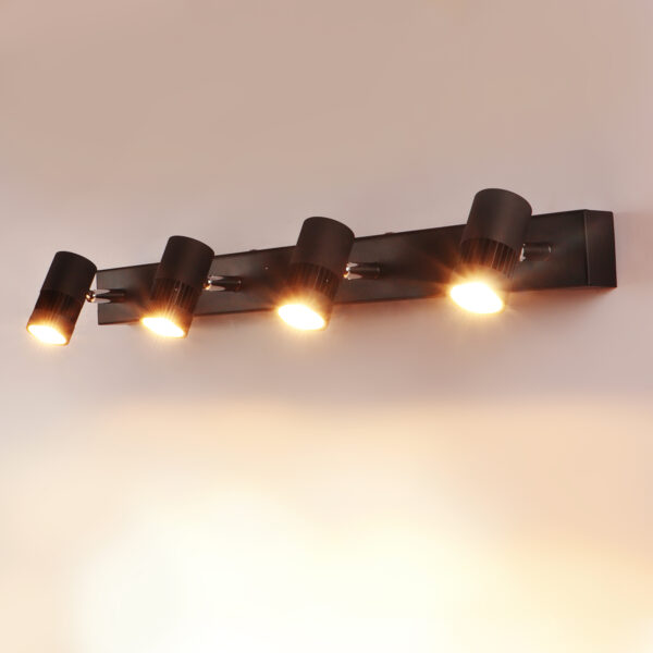 Aluminium die cast, premium powder coated adjustable picture light in black finish. It is having with four spots of 3W to provide a very bright output. Total wattage is 12 watt having warm white (yellow) light output. The light emitting spot is mounted on a rotatable neck which can be rotated in all the directions enabling spot to be positioned wherever required. Picture lights are functional wall lights which offer a direct light on the object we need to enhance. Can also be made available in white (6000K) and neutral white (4000K) light output for bulk requirement. Also available in one, two, three, five, six spot options with code , B1098-WW, ML383-2, ML383-3, ML383-5, ML383-6. White body also available with codes B1069-WW, ML382-2, ML382-3, ML382-4, ML382-5, ML382-6.