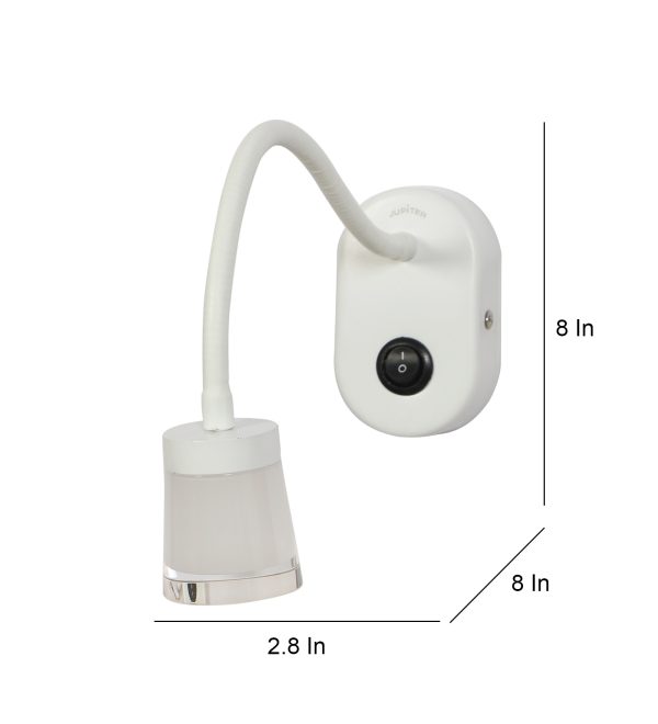 White , sleek, premium, aluminium, mild steel adjustable bed side spot light using high quality LED and driver. Ideal to install on the side of the bed at a low height. This highlights a small area giving yellow light , which can be adjusted by rotating the pipe in any required direction. The sleep of the other person is not disturbed while using this light since the area highlighted is limited. It can also be used as a spot light or a picture light to enhance the look of any object.