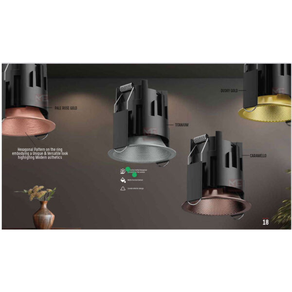 LEARC Premium dusky gold finish 21 watt dimmable and tunable (RF, BT, MESH, WIFI) LED downlight.