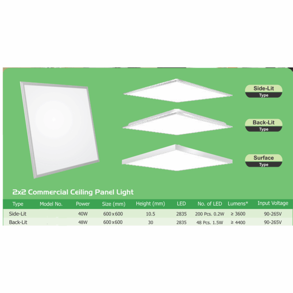 LEARC Premium side lit surface type 2 x 2 commercial ceiling panel light with top quality LED and driver.