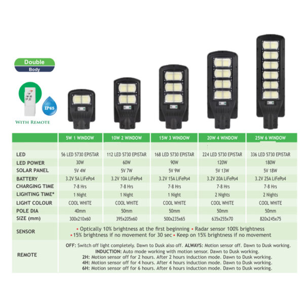 SUPERSCAPE 15 watt IP65 integrated solar street light three window double body with remote
