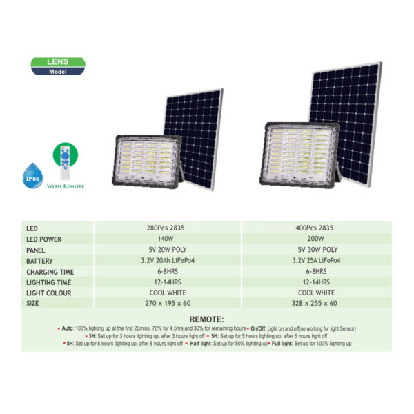 SUPERSCAPE 20 watt semi integrated solar flood light lens model.