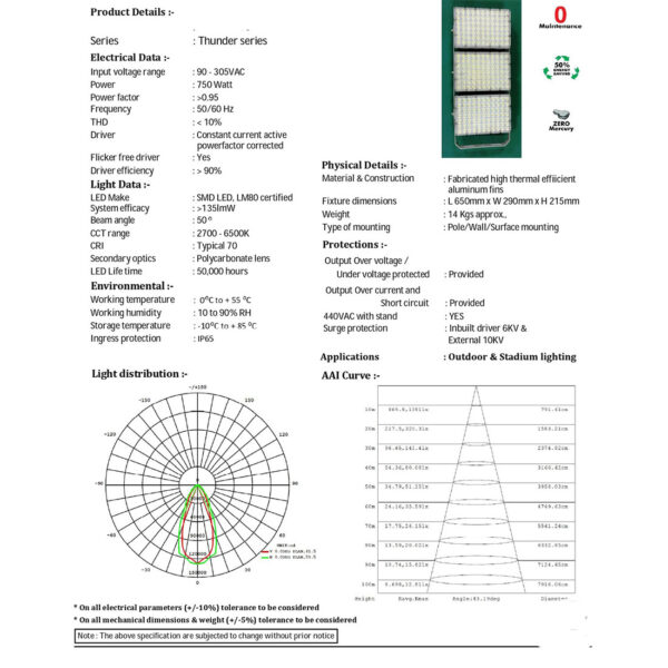 SUPERSCAPE 750 watt Stadium light with top quality LED and driver with five years warranty.