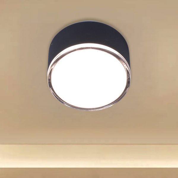 SUPERSCAPE aluminium 8 watt black finish outdoor ceiling surface round with top branded LED and IP65 driver 3K.