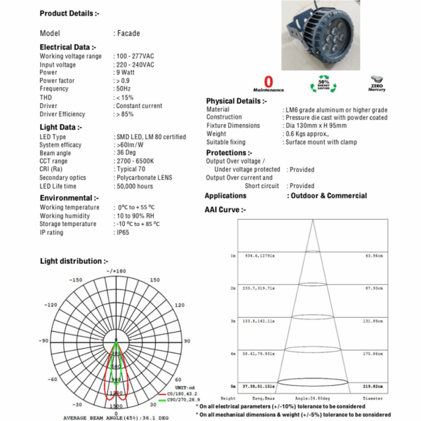 SUPERSCAPE aluminium die cast grey finish facade light 9 watt.
