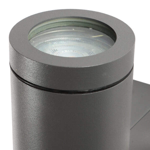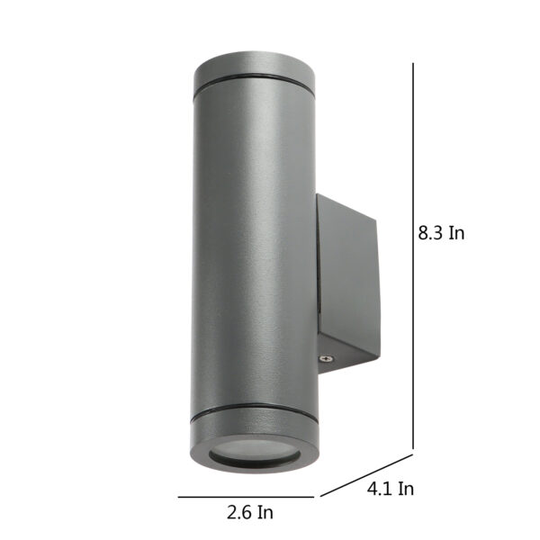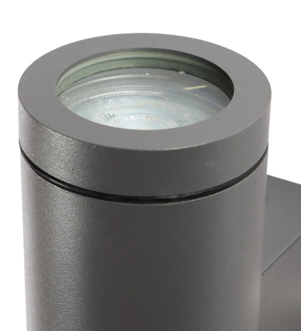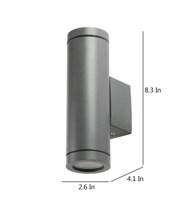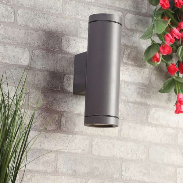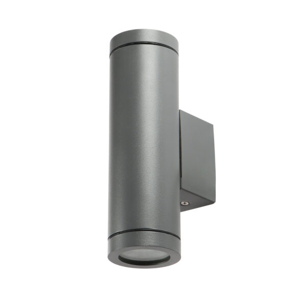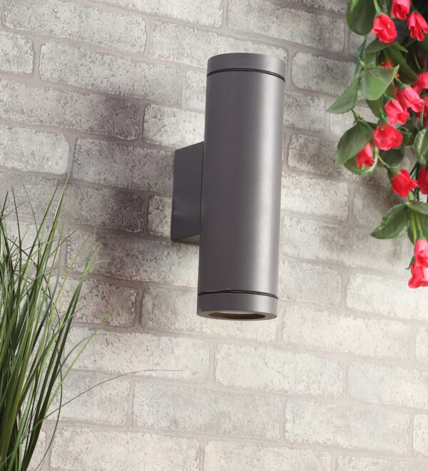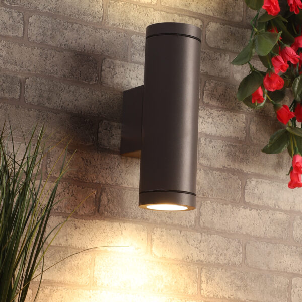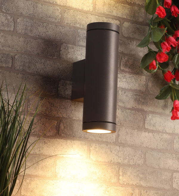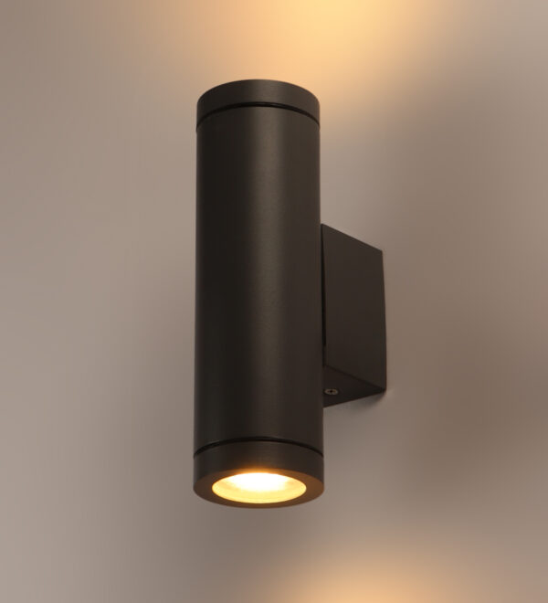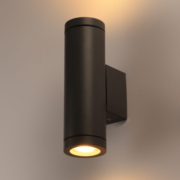 Aluminium die cast one of the top selling export quality cylindrical wall light providing up and down lighting available in black finish, perfect to use outdoors. It is maintenance free,only the change of lamp is required which is available locally everywhere. Excellent for installing in many locations such as front doors, garden walls, sheds and garages, parking. Can be dimmed if used with a dimmable lamp. Rated at IP54 it is intended for exterior use it can also be installed inside if you wish. Lamp not included.