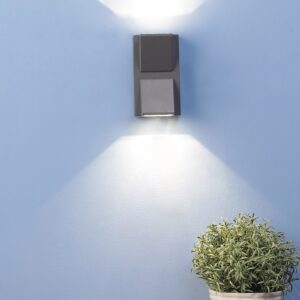 Vertical up and down aluminum die cast outdoor wall light in black finish using high quality LED and driver with high success rate having less than 0.5% replacement. It is a two way light having 5W COB for more light output. It is economical and one of the most popular design preferred by the lighting designers, builders and architects. It can be used in both indoor and outdoor applications such as stair case walls, terrace walls, outdoor walls, boundary walls, open parking, stilt parking, basement parking, passage walls, entrance pillars. Also available in one way (Code WL1975). IP54 rated. Protection against splashed water can be customized as per requirement for bulk quantities.