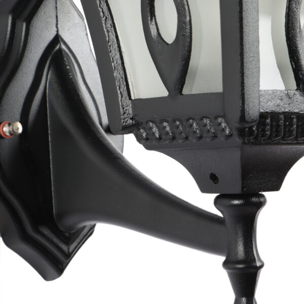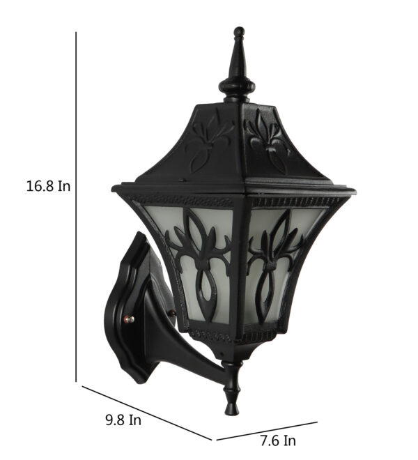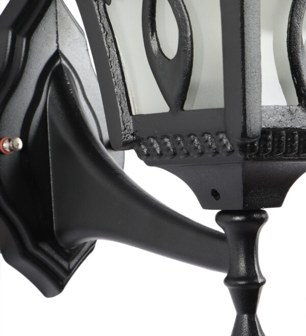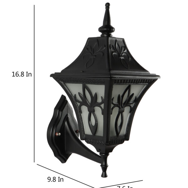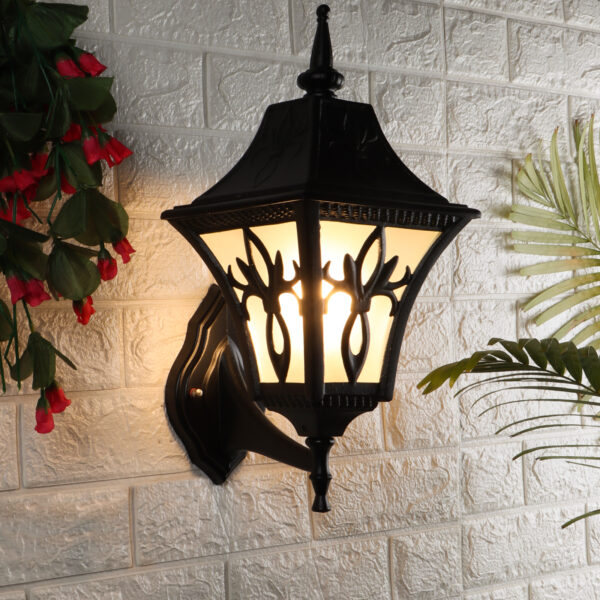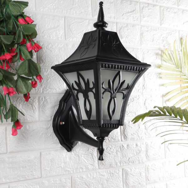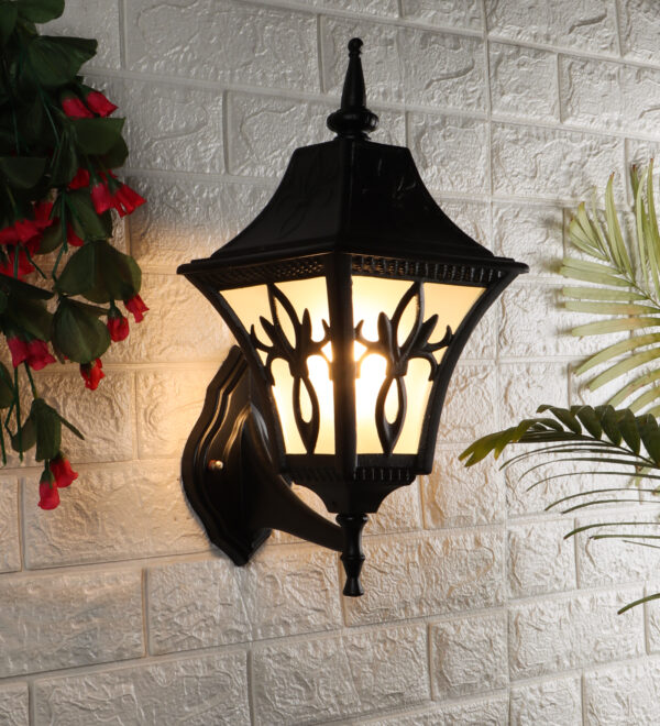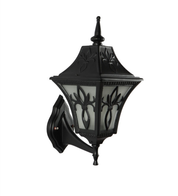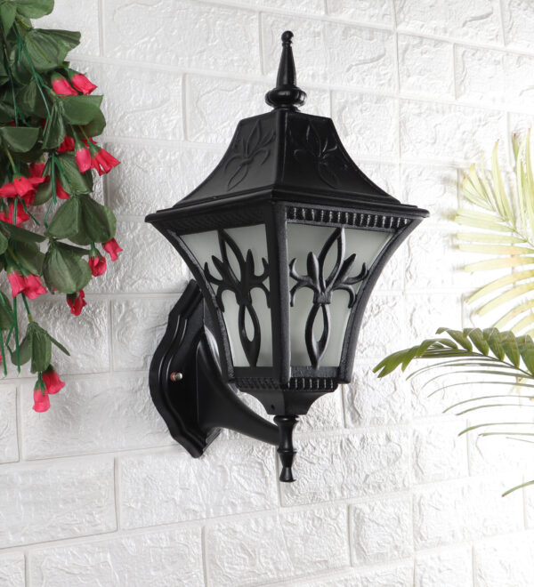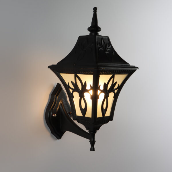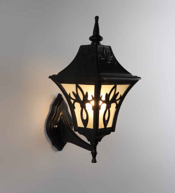 Solid, heavy, aluminium die cast, premium, one of top selling export quality traditional outdoor wall light is available in black finish. It is one of the most popular design in India. It is maintenance free, comes with an B22 holder, only the change of lamp is required, which is available locally everywhere You can of course swap out the bulb for one that is dimmable, has a higher light output or a different color temperature. IP54 rated providing protection from sprayed water in any direction and making this light perfect for use outdoors. Application areas include Stair case walls, passage to staircase, terrace walls, terrace gardens outdoor walls, boundary walls, open parking, stilt parking, basement parking, balcony, theme restaurants and bars,premium farm houses and party venue. Matching variations in wall light – WL2569. Matching Gate Light – GL4655. Matching Pendant – HL3751, Matching Bollard – K1049, K1078. All designs available in antique gold colour also. LAMPS NOT INCLUDED.