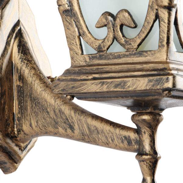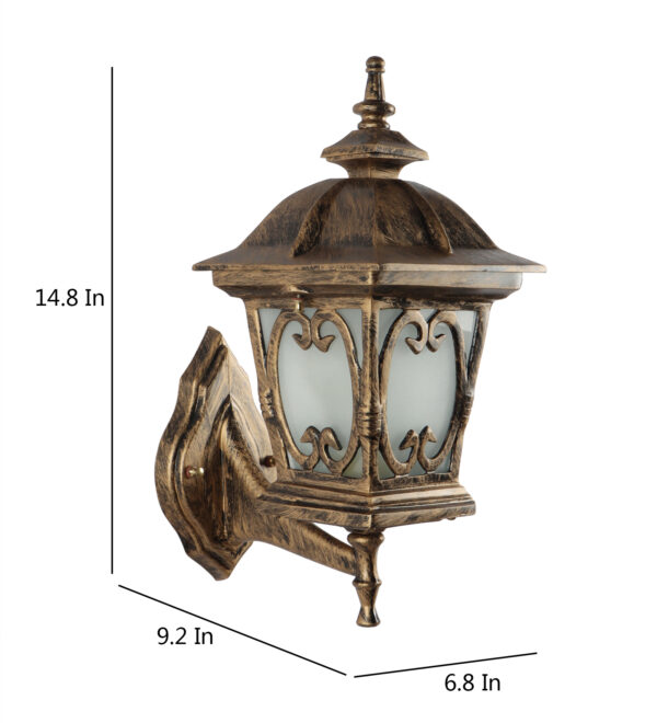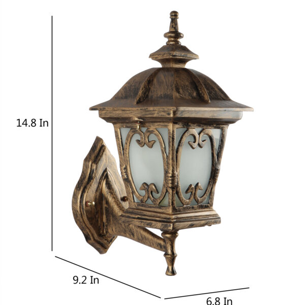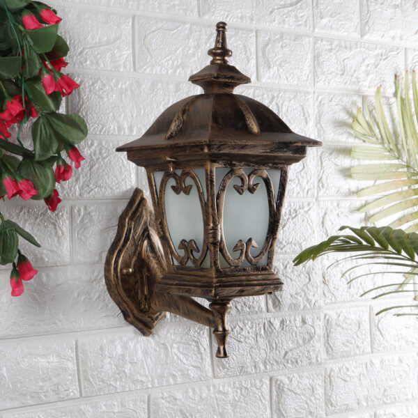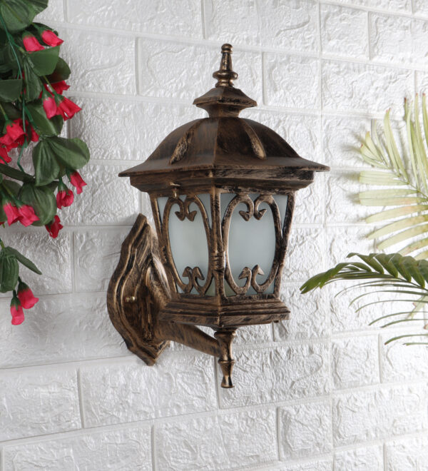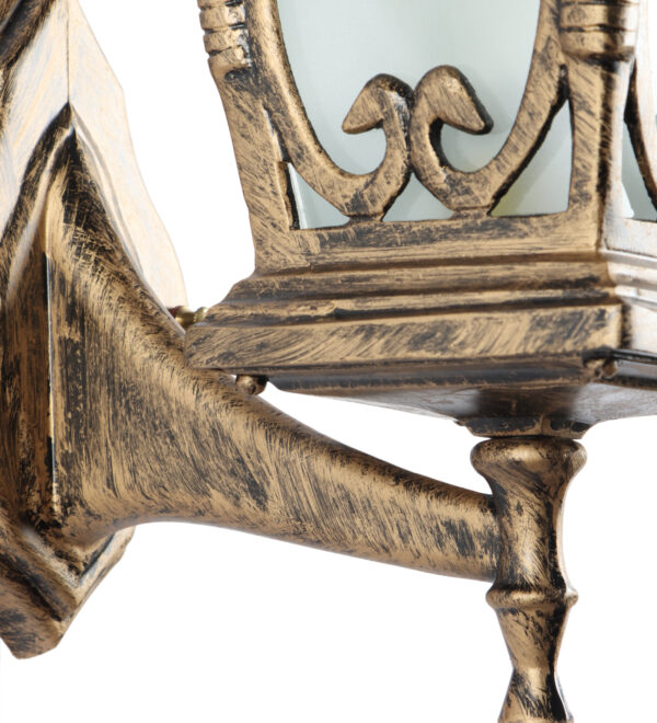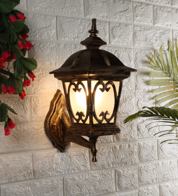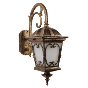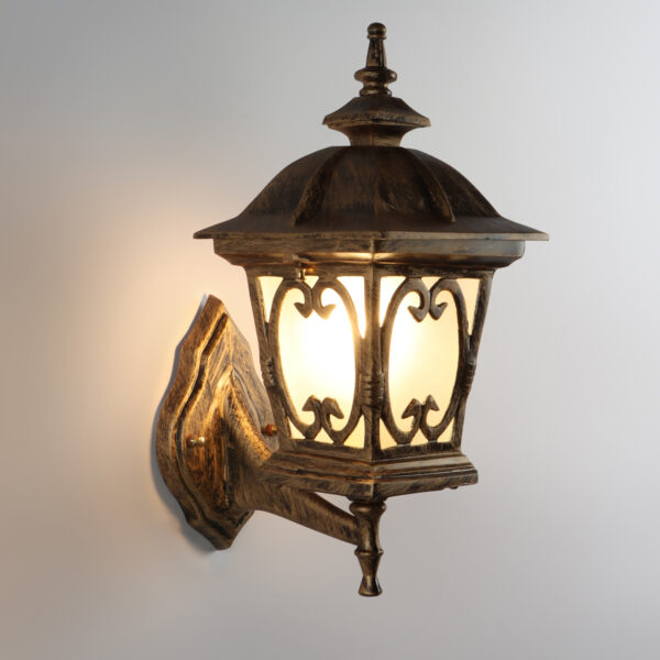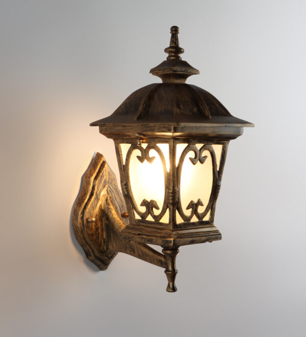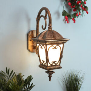 Solid, heavy, aluminium die cast, premium, one of top selling export quality traditional outdoor wall light is available in antique gold finish. It is maintenance free, comes with an B22 holder, only the change of lamp is required, which is available locally everywhere You can of course swap out the bulb for one that is dimmable, has a higher light output or a different color temperature. Application areas include Stair case walls, passage to staircase, terrace walls, terrace gardens outdoor walls, boundary walls, open parking, stilt parking, basement parking, balcony, theme restaurants and bars,premium farm houses and party venue. IP54 rated providing protection from sprayed water in any direction and making this light perfect for use outdoors, can also be installed indoors it goes with the color theme. Matching variations in Gate Light -GL4555, GL4555-M. GL4555-S. Similar variations in wall light code – WL2570, WL1143. Matching bollard code K1068. LAMPS NOT INCLUDED.