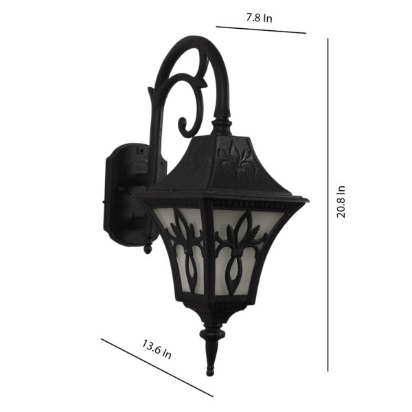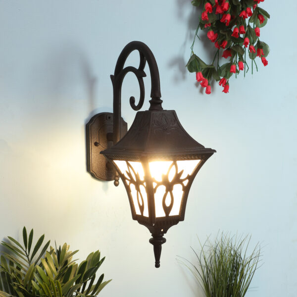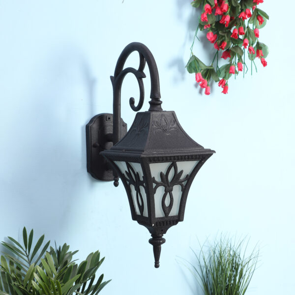Solid, heavy, aluminium die cast, premium, one of top selling export quality traditional down facing outdoor wall light is available in antique finish. It is one of the best seller in India. It is maintenance free, comes with an B22 holder, only the change of lamp is required, which is available locally everywhere You can of course swap out the bulb for one that is dimmable, has a higher light output or a different color temperature. IP54 rated providing protection from sprayed water in any direction and making this light perfect for use outdoors. Application areas include Stair case walls, passage to staircase, terrace walls, terrace gardens outdoor walls, boundary walls, open parking, stilt parking, basement parking, balcony, theme restaurants and bars,premium farm houses and party venue.Can also be installed indoors it goes with the color theme. Matching variations in wall light WL1835, Matching Gate Light GL4655. Matching Pendant HL3751. Matching Bollard – K1049, K1078.. LAMP NOT INCLUDED.