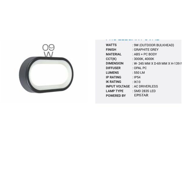 SUPERSCAPE premium 9 watt IP54 PC – ABS Bulkhead grey finish.