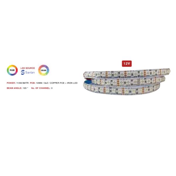 Ultra Premium 5050 12V 120 LED per meter strip 110 watt 10 mm RGB 5 meter roll without driver MEM206
